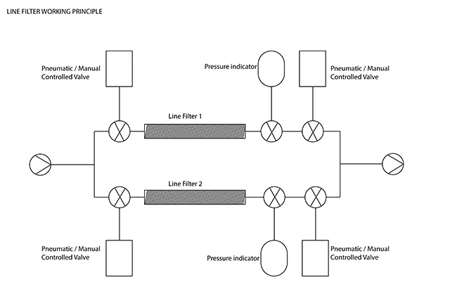 توفر المرشحات الخطية إزالة الجزيئات الخشنة من المرشح الرقيق أكثر من داخل المنتج. وهي تستخدم عادة في شكل مرشحات .tanden